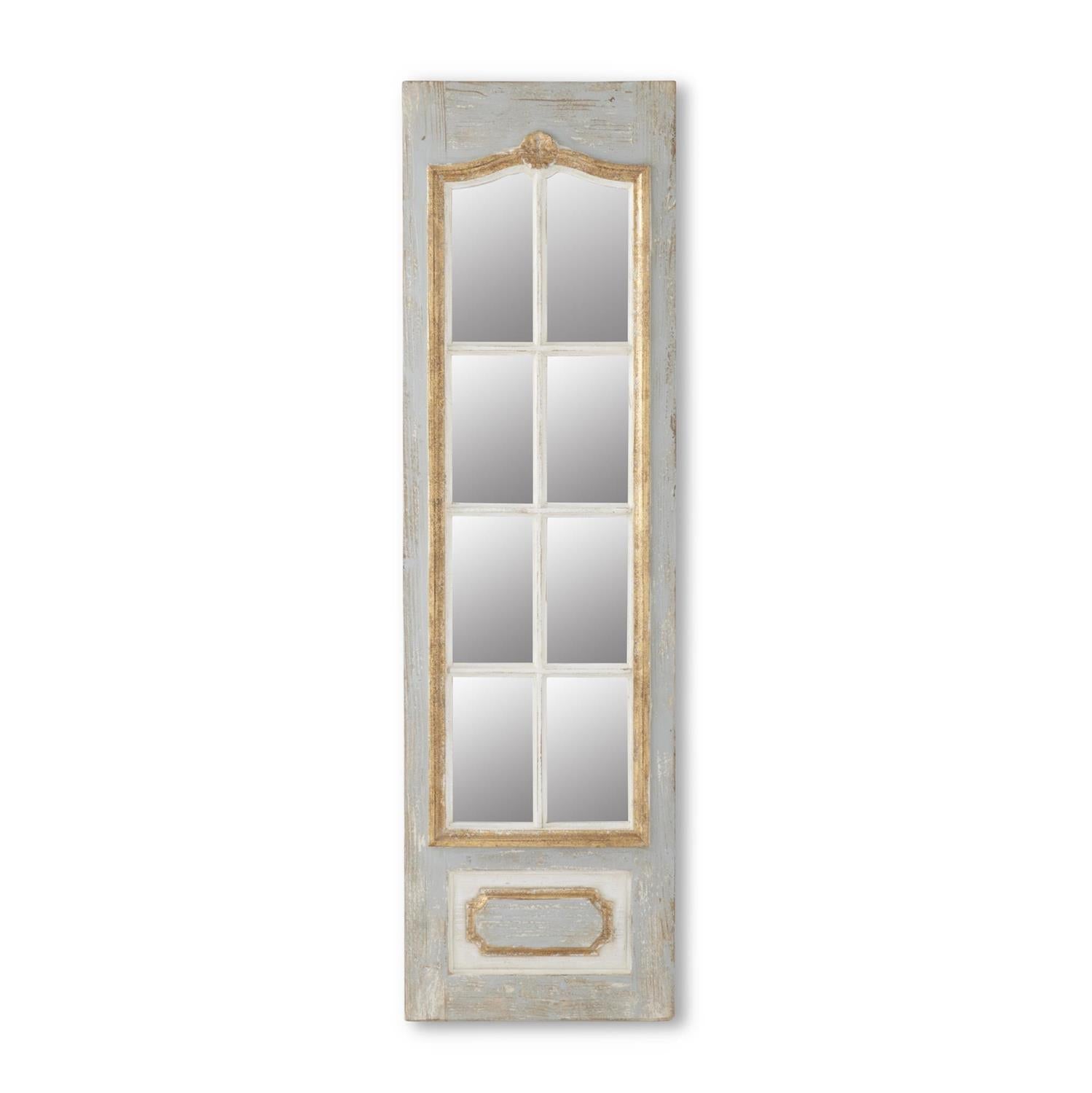 68 INCH WEATHERED BLUE WHITE & GOLD WINDOW PANE MIRROR