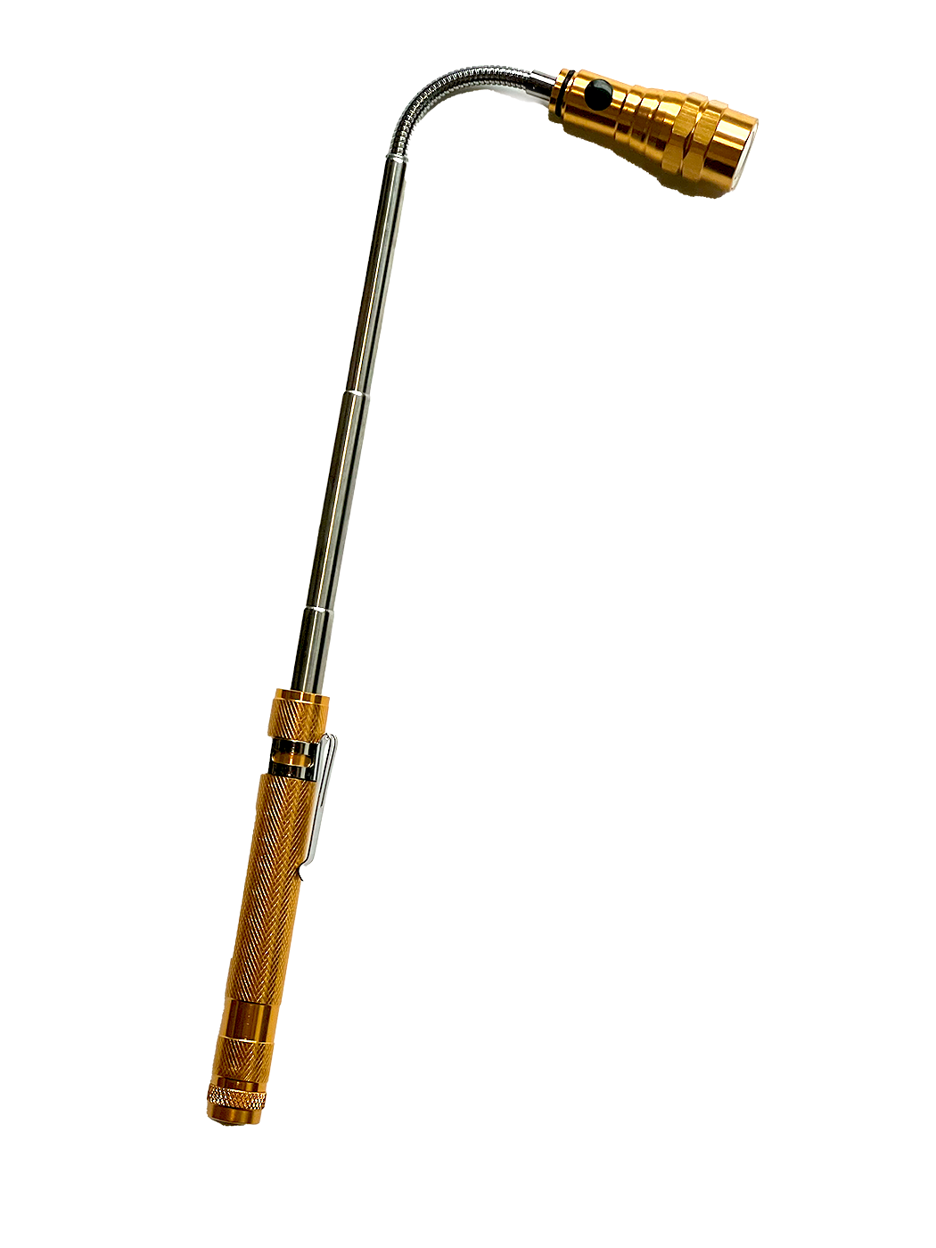 Get light where you need it every time with this telescoping, posable gooseneck flashlight. A perfect gift item for any mechanic or DIY guy. A strong magnetic base makes for a hands-free light source.