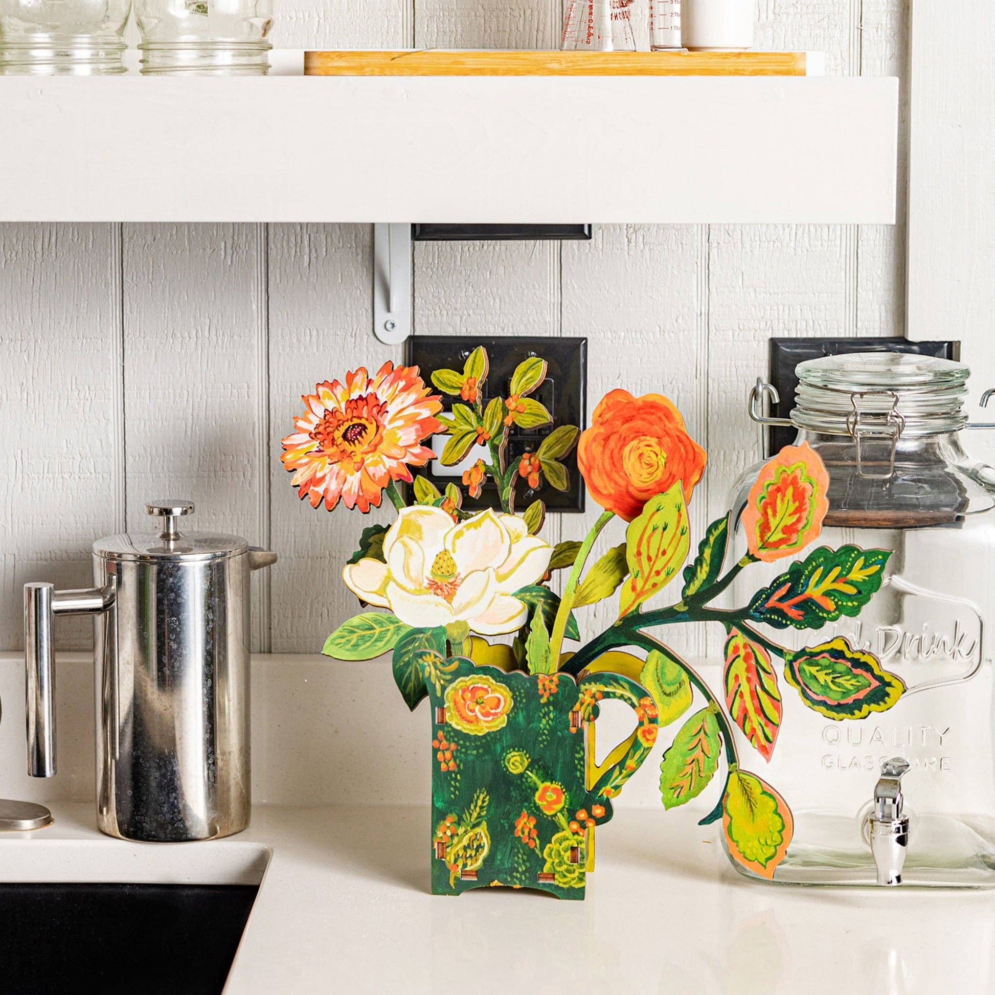 The design is visible from both sides to make a beautiful centerpiece. Display one or many flowers in one of our acrylic bases place in any vase that is 5" tall or shorter. Choose from 80+ flowers to create your own unique arrangement. Acrylic bases purchased separately:
