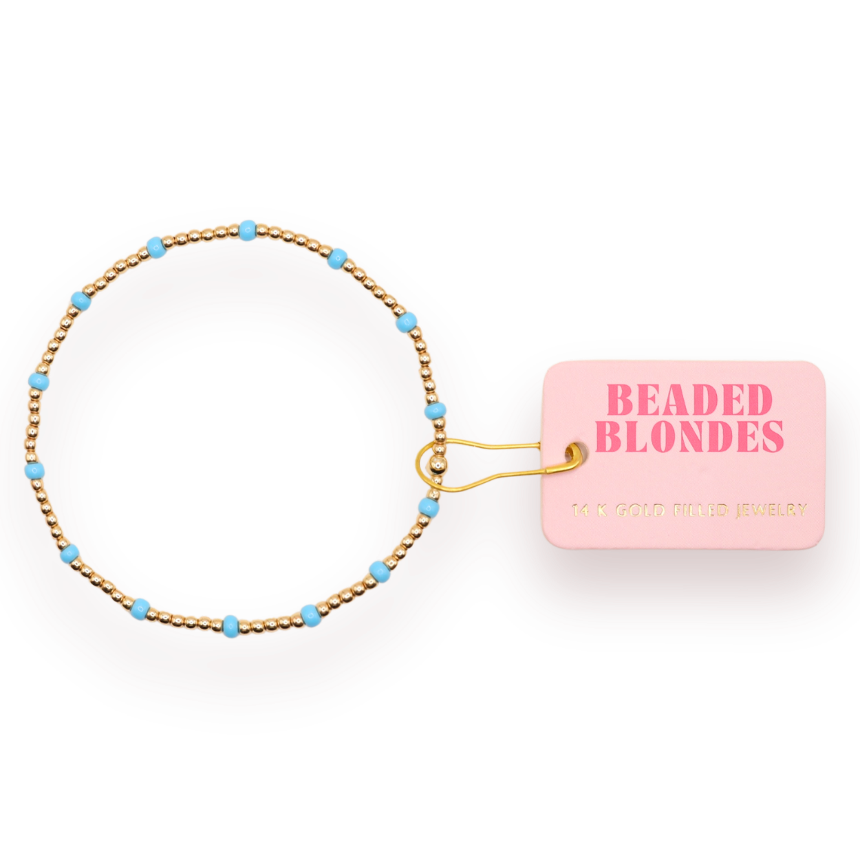 The powder blue dainty poppi is a mix of 2mm & czech glass beads.